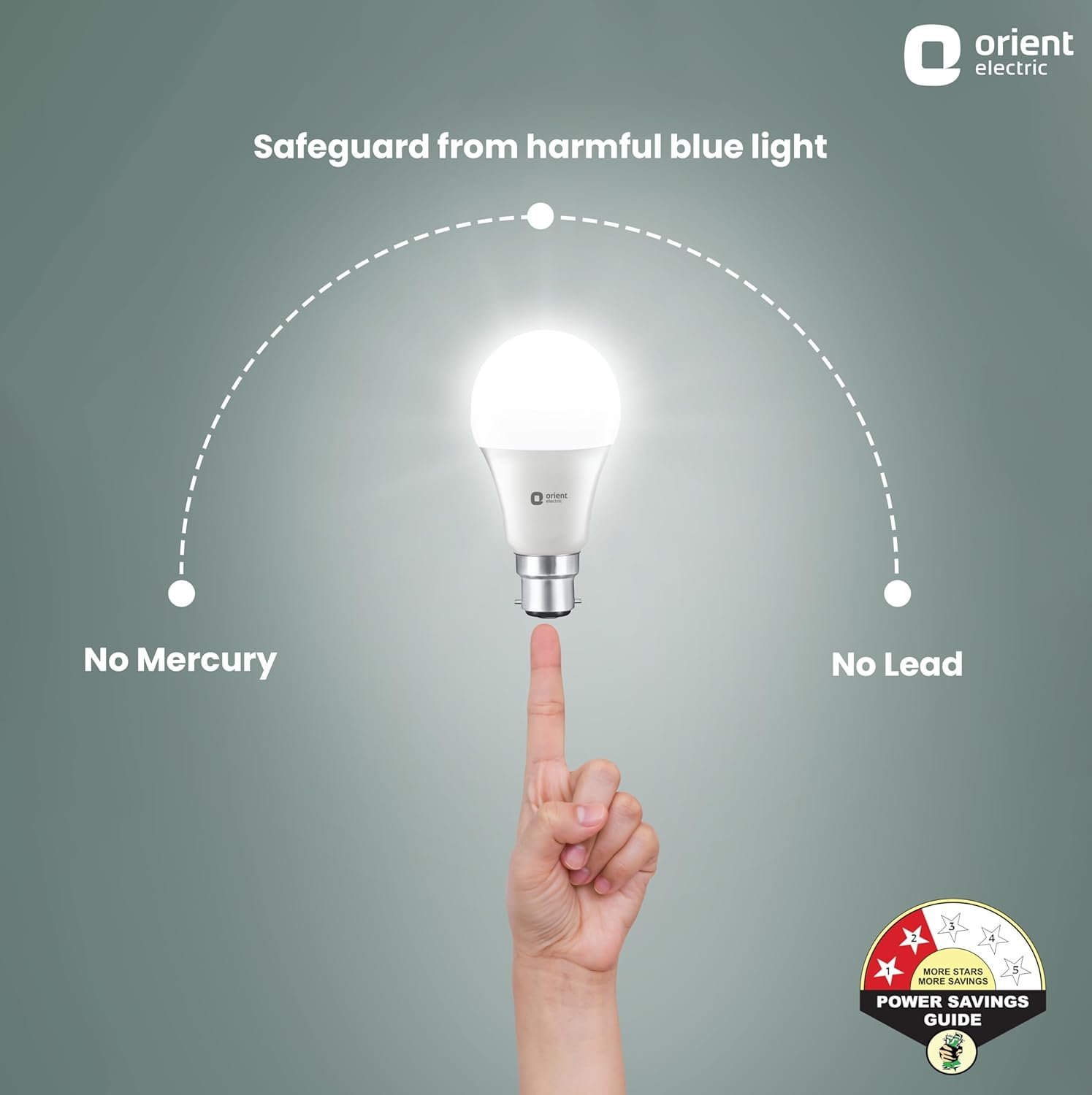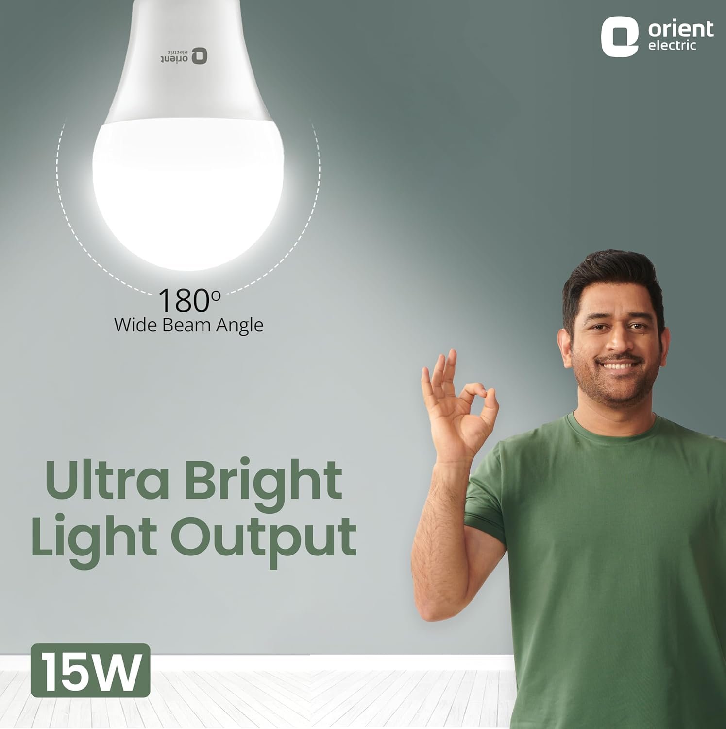 Orient Electric 15W High Glow LED bulb| 180-degree wide beam angle| Voltage surge protection up to 4 kV| 6500K, Cool White| B22d base| Made in India| Pack of 1(AA1103/35)