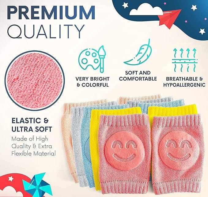 - Comfort & Fit: Enjoy the soft, stretchable fabric of our knee pads for kids and knee socks for baby. These knee pads offer a snug, comfy fit on both knees and elbows, perfect for infants up to 2 years, making them an essential part of your baby protection products.