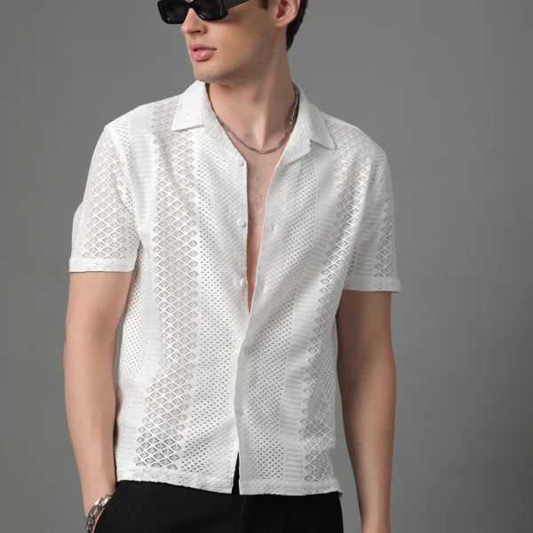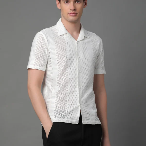 Men Regular Fit Self Design Lapel Collar Casual Shirt[AA1102/322]