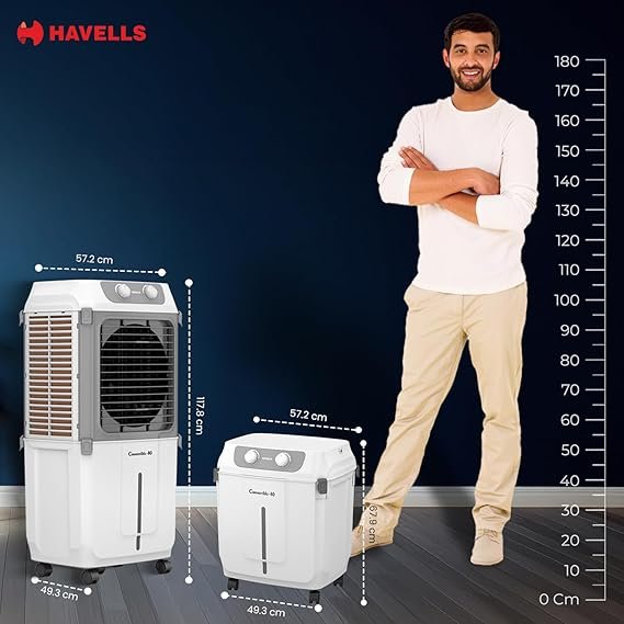 Havells 2-in-1 Convertible 80 L Desert Air Cooler for room| Dual functionality & easy storing| Can be used as side table| 5 Leaf Metal Blade Fan| Powerful Air-Delivery| Bacteria shield honeycomb pads