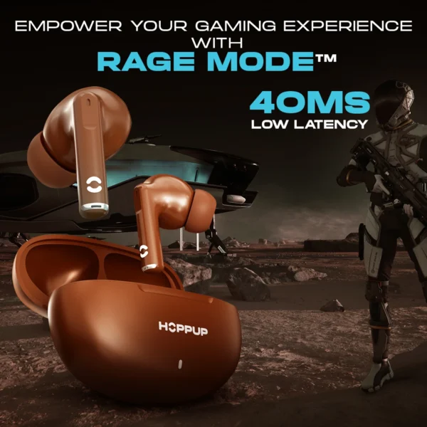 HOPPUP AirDoze S40 Earbuds with 13MM Drivers, 40H Playtime, Rage Mode,ENC & Type-C Bluetooth (Chocolate Brown, True Wireless)