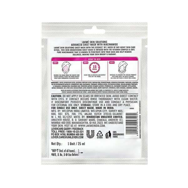 Lakme Skin Solutions Brightening Sheet Mask with Niacinamide – 25 ml