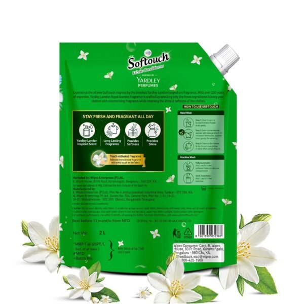 Softouch Yardley Royal Jasmine 2000 ml Fabric Conditioner | Long lasting fragrance for clothes(AA1103/127)
