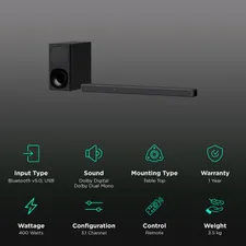 SONY HT-G700 400W Bluetooth Soundbar with Remote (Dolby Digital, 3.1 Channel, Black)