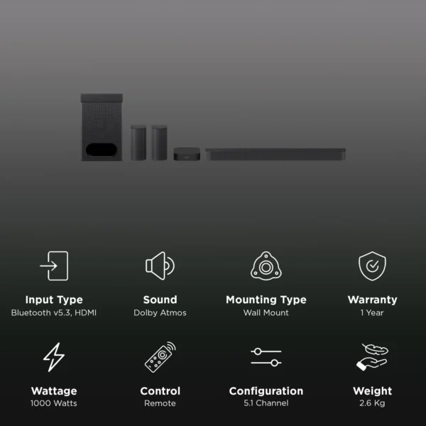 SONY BRAVIA Theatre System 6 1000W Bluetooth Home Theatre with Remote (Vertical Surround Engine, 5.1 Channel, Black)