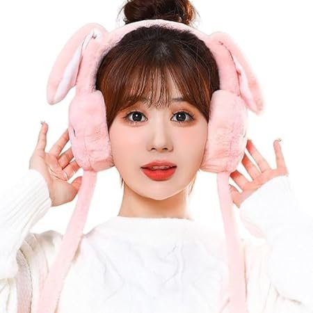 Darnex Women Winter Plush Earmuffs Moving Bunny Ear Warmer for Kids Girls Boys Woolen Winproof Foldable Knitted Ear Muffs | Freesize. (Pink)