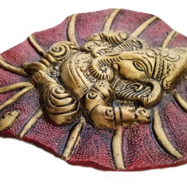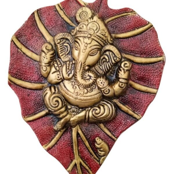 Trendy Crafts Metal Lord Ganesha on Leaf Wall Hanging | Spiritual Hindu Wall Décor Art | Sacred Blessing for Home Entrance, Puja & Office | Durable Metal Craft (Mahroon)(AA1103/135)