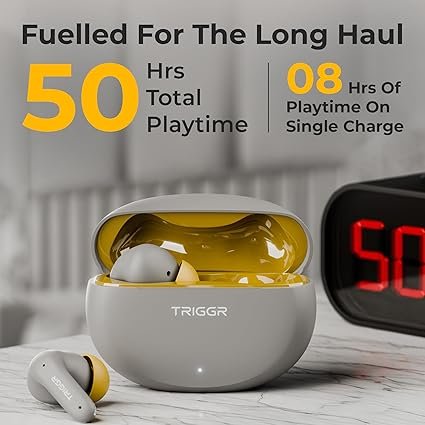 TRIGGR Ultrabuds N5 with Latest BT v6.0, 40Hr Playtime, 13mm Dynamic Drivers, Rich Bass Bluetooth (Smoky Sun, True Wireless)