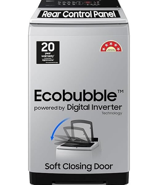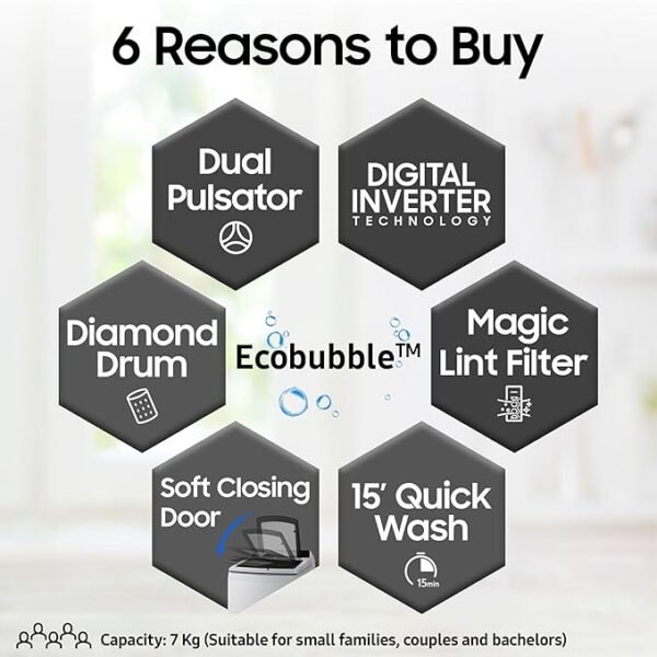 Samsung 7 kg, 5 Star, Eco Bubble Technology, Digital Inverter Motor, Soft Closing Door, Fully-Automatic Top Load Washing Machine (WA70BG4441YYTL, Lavender Gray)