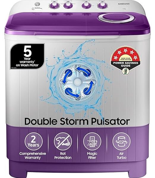 Samsung 7 kg, 5 star, Semi Automatic Top Load Washing Machine (WT70M3000UU/TL, Air Turbo Drying, LIGHT GRAY, 5 Year Warranty on Wash Motor)