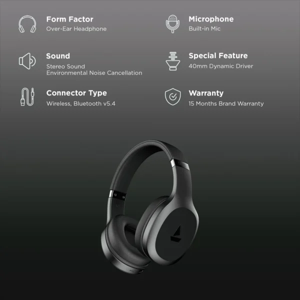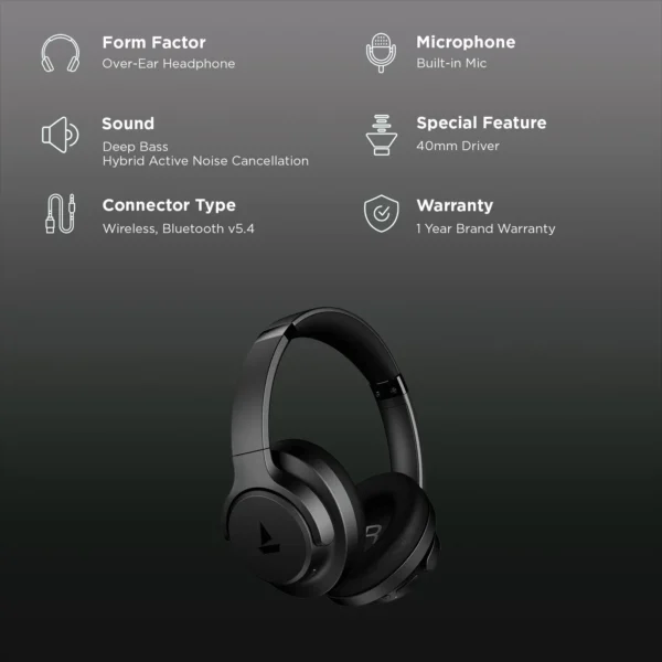 boAt Rockerz 512 ANC Bluetooth Headphone with Mic (ENx Technology, Over Ear, Cosmic Black)