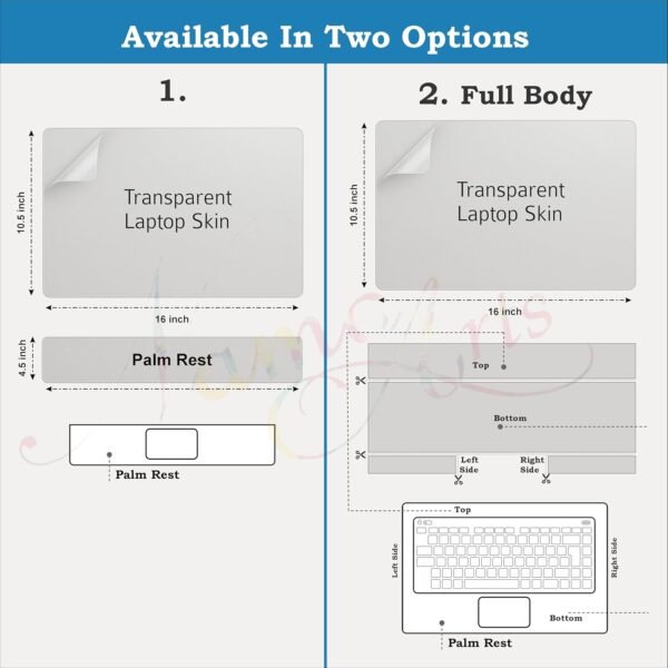 120 GSM Transparent Gloss | Laptop Back Skin with Palm Rest Skin | Thick Vinyl Wrap Lamination Cover for 14/15.6/16 inch Laptops | Residue Free[AA1098]