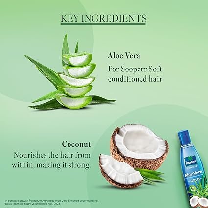 Parachute Advansed Aloe Vera Enriched Coconut Hair Oil Gold | 5X Aloe Vera With Coconut Oil| Makes Hair Sooperr Soft | 400ml (AA1104/177)