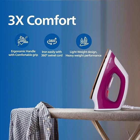 Philips Dry Iron DST0610/30 with 3 year warranty (World No.1 Ironing Brand) Powerful 1000 Watts for Fast heat up & Golden Advanced Alloy Soleplate with Uniform Heat Distribution