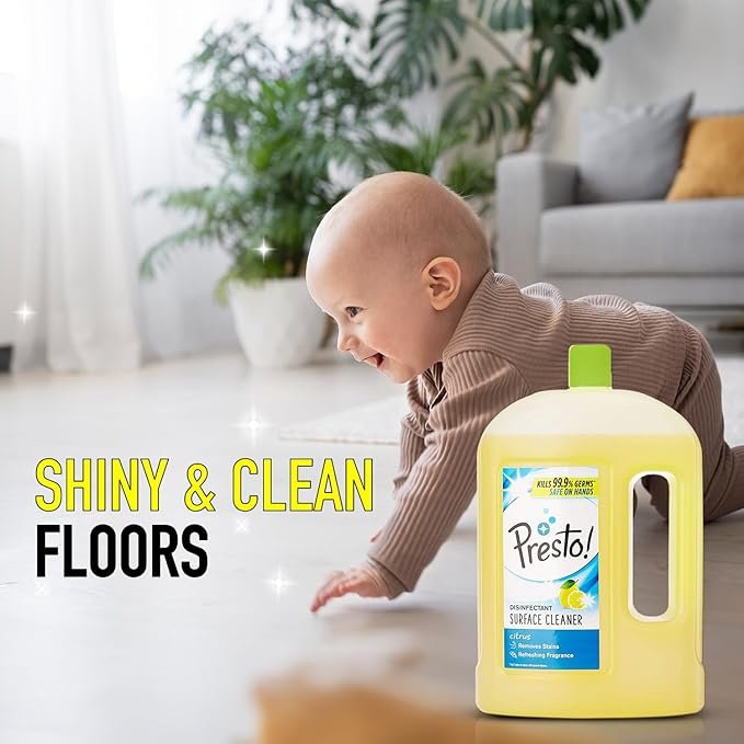 Presto! Disinfectant Surface & Floor Cleaner | Citrus | 2 Litre | Kills 99.9% Germs | Suitable For Floor & Bathroom & Surfaces Like Ceramic, Marble, Granite, Mosaic (Pack of 2)[AA1100/22]