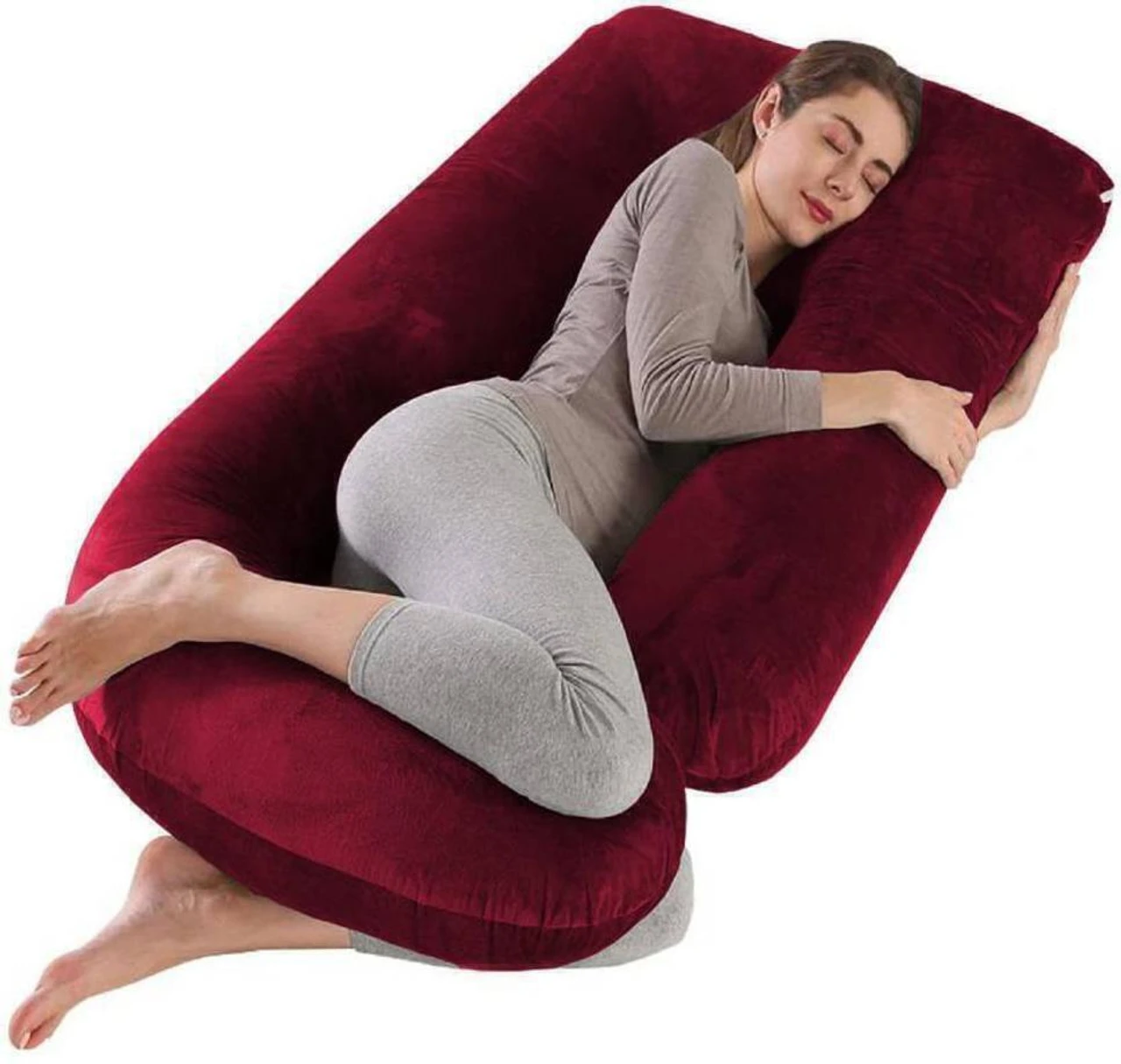 Prifarodo Microfibre Pregnancy Pillow Pack of 1 Solid Pregnancy G & J Shape for Pregnant/Maternity Back Pain Relief, & Belly Support (Maroon)[AA1098]