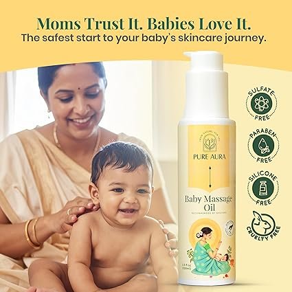 Pure Aura Baby Massage Oil 100ml | 100% Natural Baby Oil for Newborns | Ayurvedic Skin & Hair Care | Nourishing & Moisturizing | Chemical-Free, Safe for Sensitive Skin | Doctors Recommended