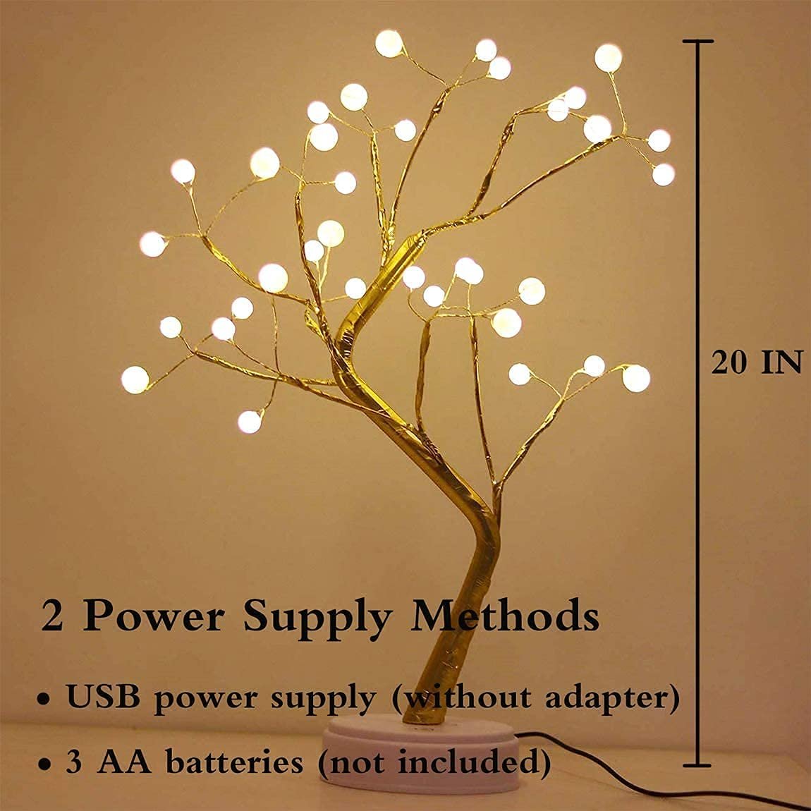 REFULGIX 36 LED Pearl Bonsai Tree Lamp with Touch Switch | USB & Battery Operated Decorative Light for Home, Bedroom, Festival, Gift Use (Warm White, Pack of 1)