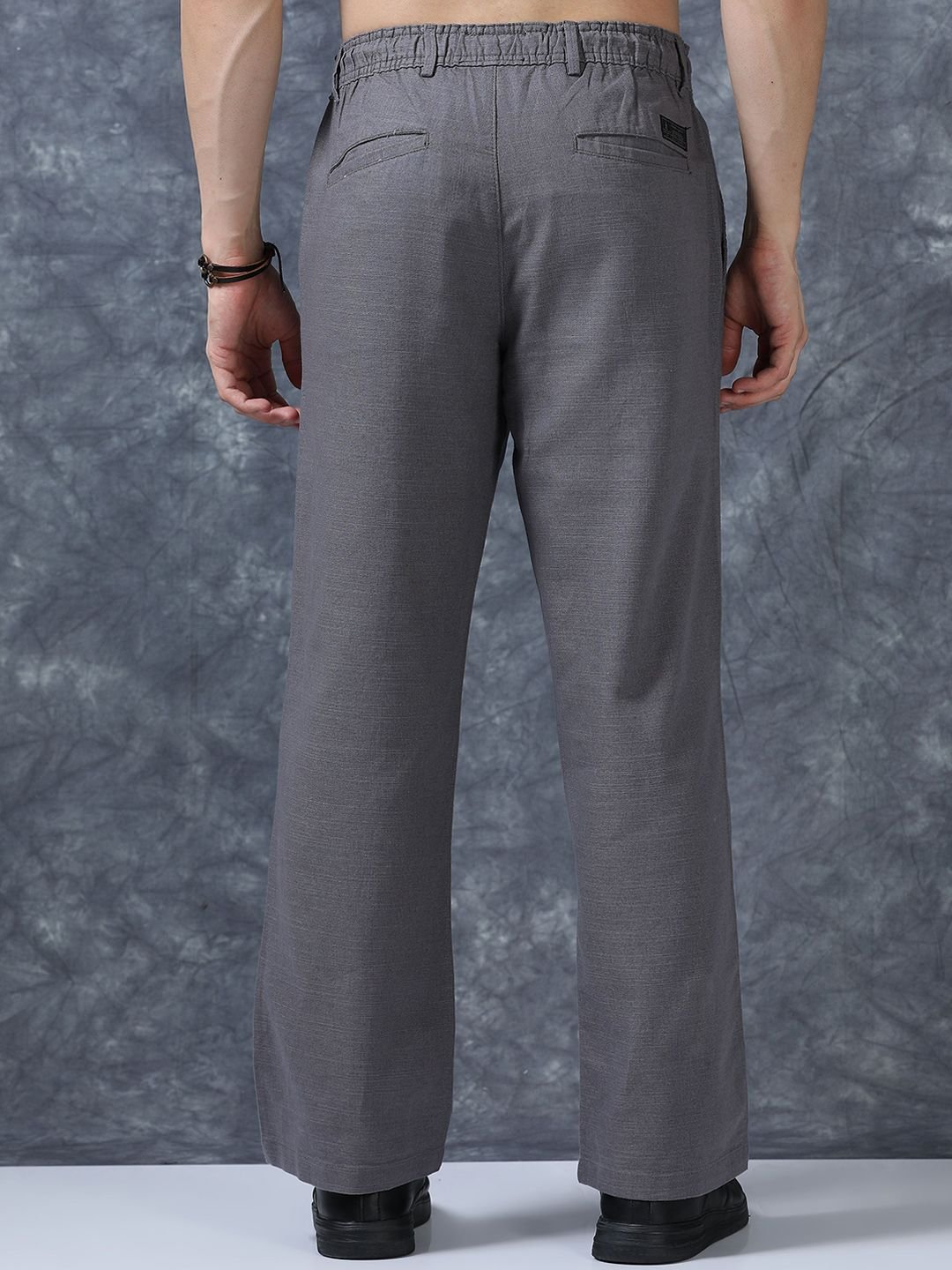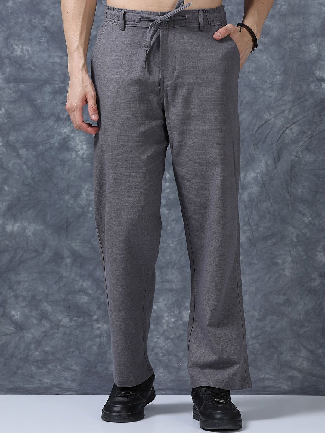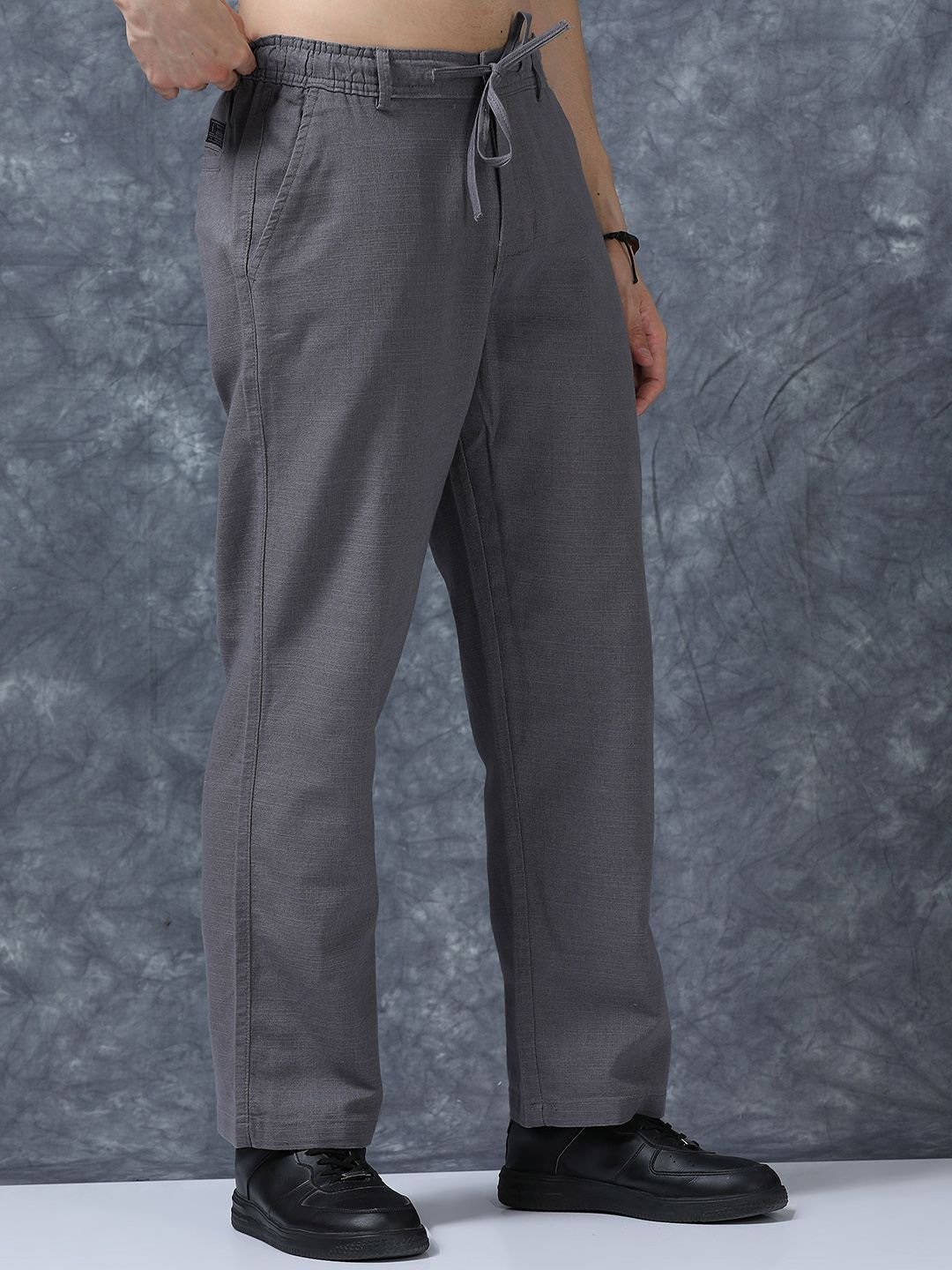Grey solid relaxed-fit trousers