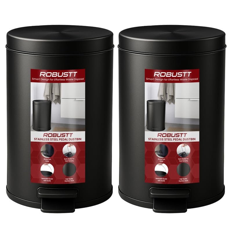 ![51hcwhkxyzL Robustt Dustbin with Pedal - 5L | Black Stainless Steel trash can | 7 Inch (W) x 10 Inch (H) | Small Trash Can for Bathroom, Bedroom, Toilet, and Kitchen � Durable & Corrosion-Resistant - Pack of 2[AA1100/113] - Image 1](https://edisonkart.in/wp-content/uploads/2026/02/51hcwhkxyzL.jpg)