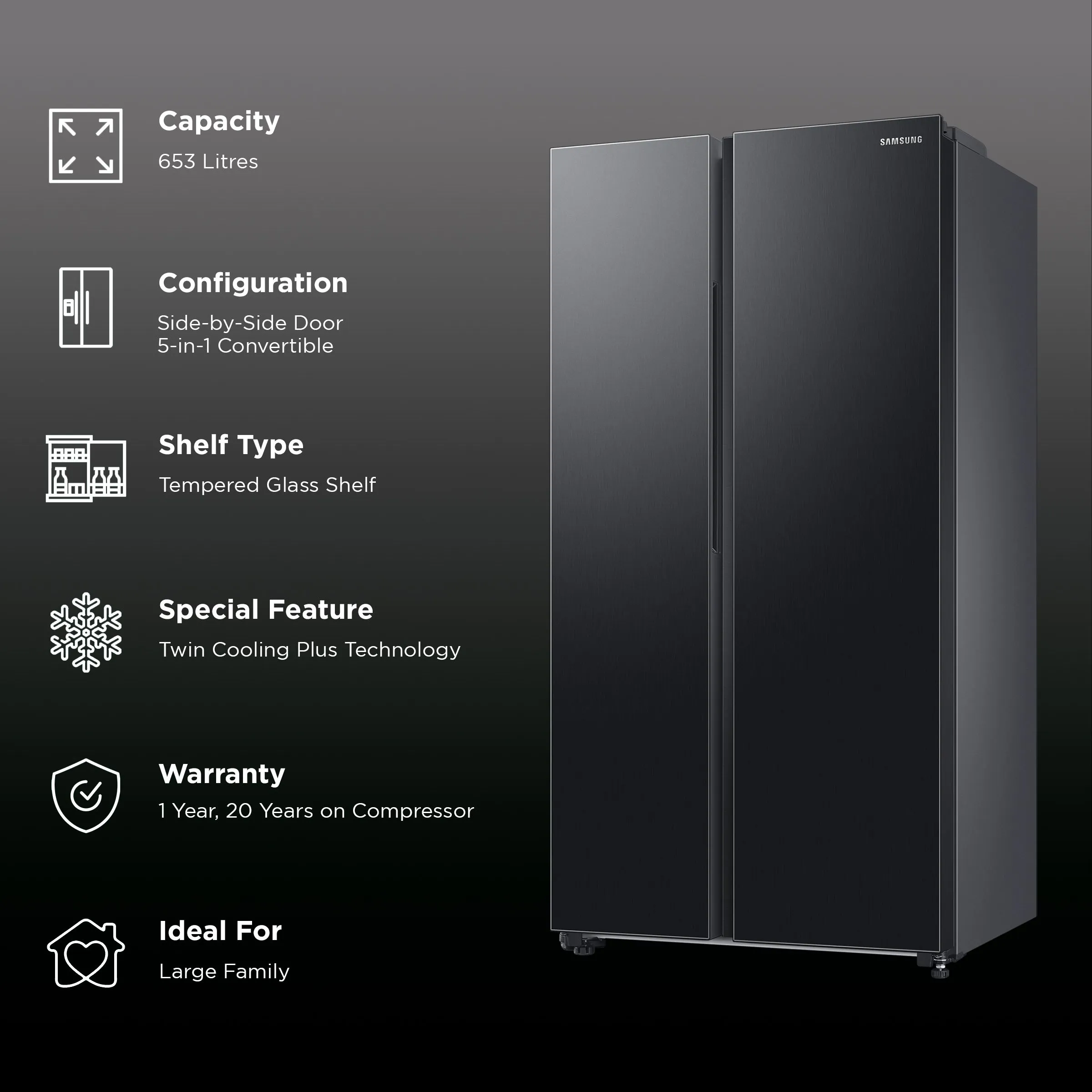Buy SAMSUNG 653 Litres 3 Star Side by Side Convertible Refrigerator with AI Energy Mode (RS76CG8113B1HL, Black DOI) Online
