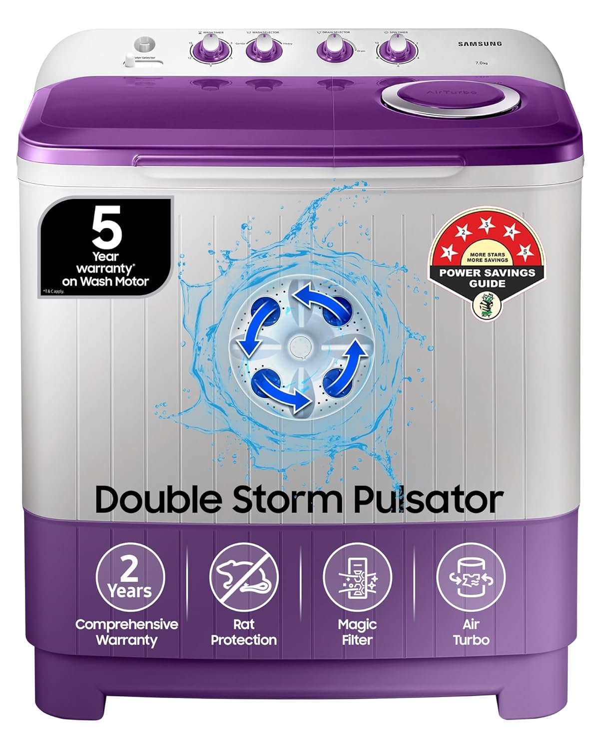 Samsung 7 kg, 5 star, Semi Automatic Top Load Washing Machine (WT70M3000UU/TL, Air Turbo Drying, LIGHT GRAY, 5 Year Warranty on Wash Motor)[aa10098/105]