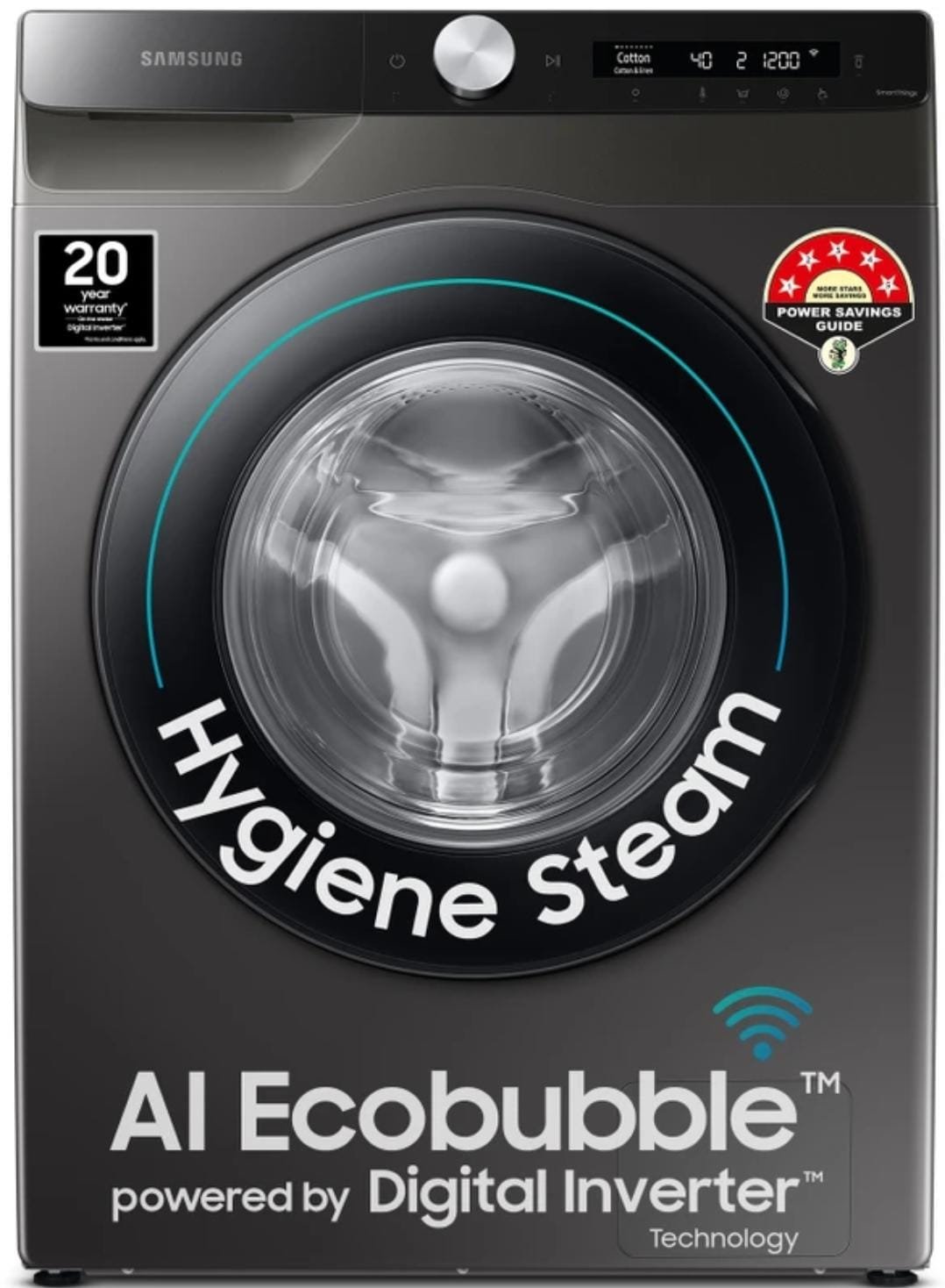 Samsung 8 kg 5 star, AI Control, AI Eco Bubble, Wi-Fi Fully Automatic Front Load Washing Machine with In-built Heater Black, Grey (WW80T504DAX1TL)[AA1098/30]