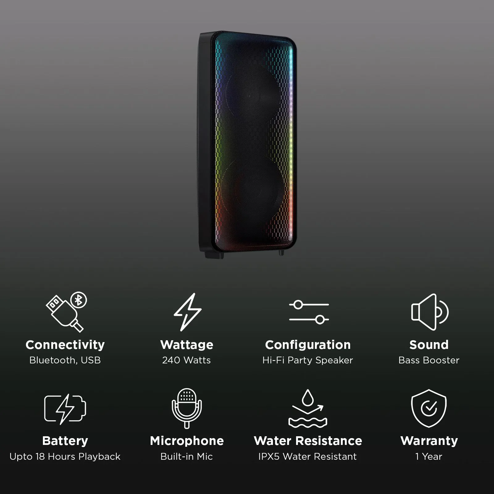 Be the first to review “SAMSUNG PartyBox 240W Bluetooth Party Speaker (Bass Booster, Black)” Cancel reply