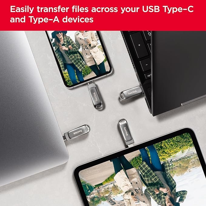 SanDisk Ultra Dual Drive Luxe USB_c Type-C (64GB & 128GB & 256GB & 512GB), OTG, Upto 400MB/S, Pendrive, Silver, 5Y Warranty (SDDDC4-064G-I35) (AA1102)