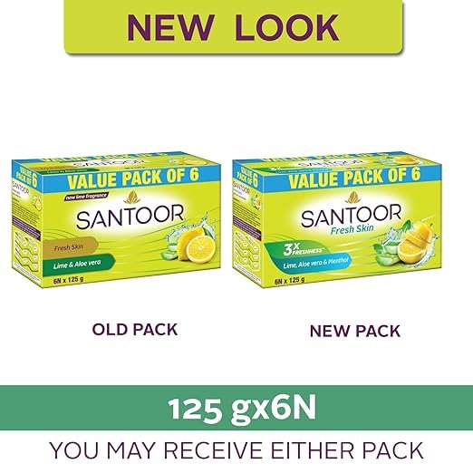 Be the first to review “Santoor Fresh Skin Aloe Vera & Lime Bathing Soap with Nourishing & Anti-Aging Properties| For Smooth & Soft and Younger-Looking Skin| For All Skin Types| 125g, Pack of 6” Cancel reply