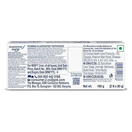 Sensodyne Toothpaste Rapid Relief | Fast Sensitivity Relief Tooth Paste Combo Pack – 160gm (80gm x 2) | Fresh Taste | Dentist Recommended