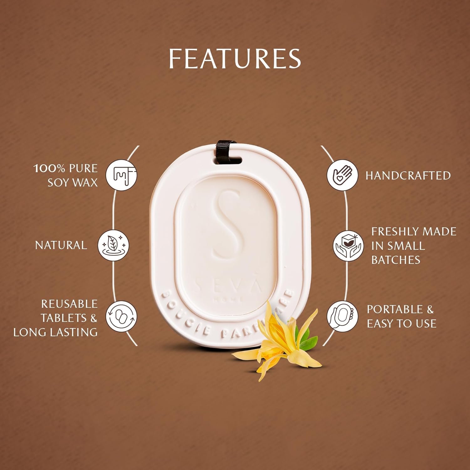 SEVA HOME Closet Freshener – Wild Flower | Wardrobe, Drawer & Cabinet Odor Eliminator | Long-Lasting Soy Wax Tablet | Non-Toxic & Spill-Free[AA1100/80]