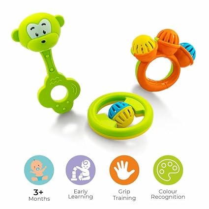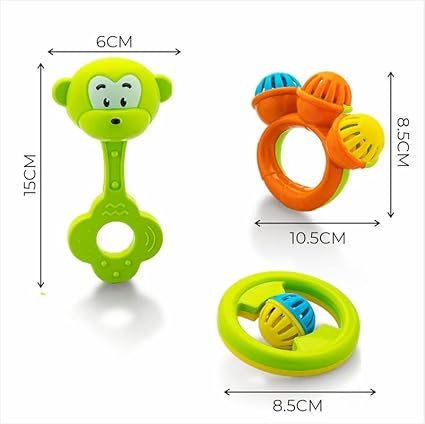 Storio Infant Acrylonitrile Butadiene Styrene (Abs) So Sweet Rattle 3Pcs Packing Non Toxic Bright and Colorful Rattles Baby Boy Girl Toys Set,Multicolor