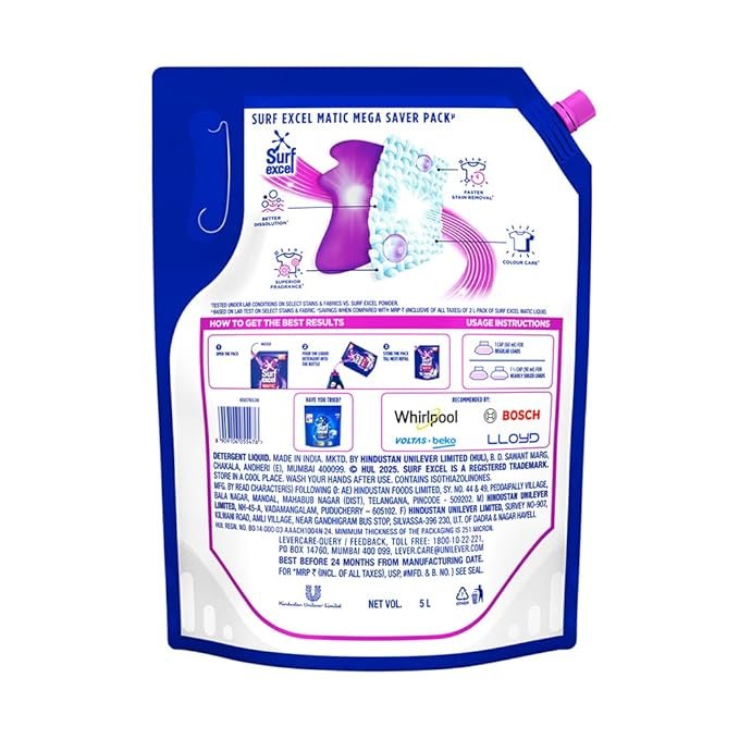2 reviews for Surf Excel Matic Front Load Liquid Detergent 5L Refill Pouch, Specially designed to remove Tough Dried Stains, 1st time in Washing Machine