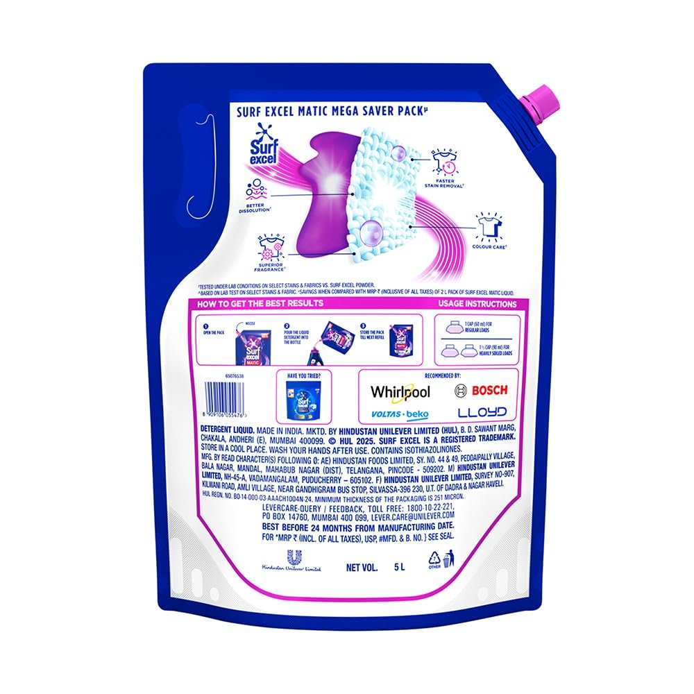 Surf Excel Matic Front Load Liquid Detergent 5L Refill Pouch, Specially designed to remove Tough Dried Stains, 1st time in Washing Machine [AA1102/263]
