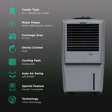 Symphony HiFlo 27 Litres Room Air Cooler with i-Pure Technology (Cool Flow Dispenser, Grey) 3 (11 Ratings & 9 Reviews)