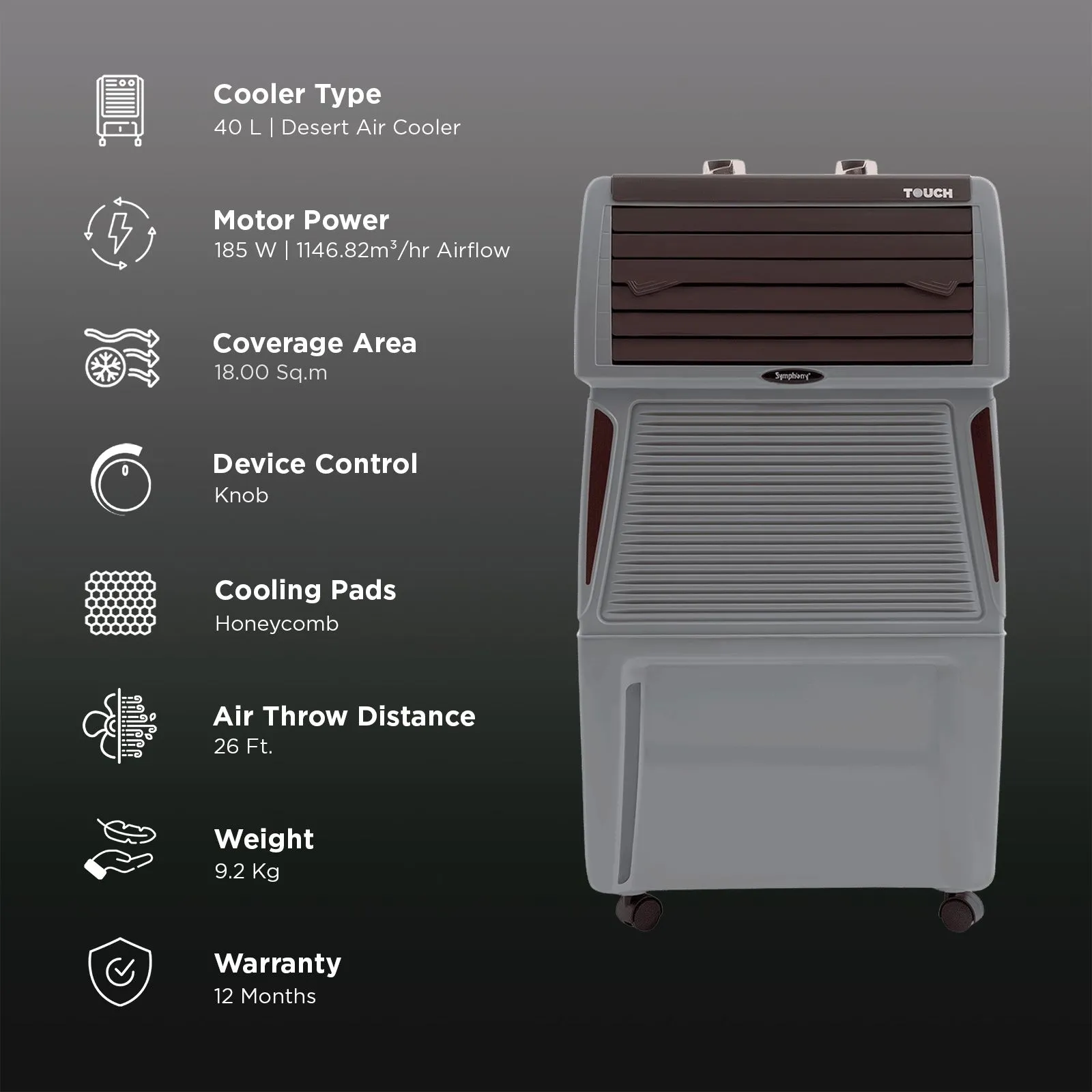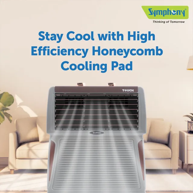 Symphony Touch 40 Litres Desert Air Cooler with CFD Technology (Inverter Compatible, Grey & Brown)