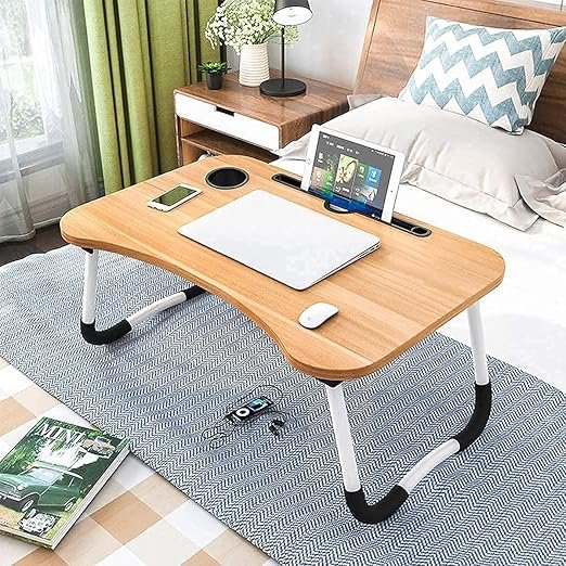 TEKCOOL Study Table Foldable Wooden Laptop Bed Tray Table, Multifunction Lap Tablet Desk with Cup Holder, Perfect for Eating Breakfast, Reading Book, Working, Watching Movie On Bed (AA1104/3)