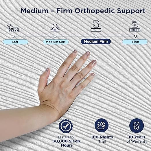 The Sleep Company SmartGRID Ortho Mattress | Japanese Patented Technology | AIHA Certified | Medium Firm Orthopedic Mattress for Back Pain Relief | 10 Years Warranty | Queen Size Bed 72x60x6