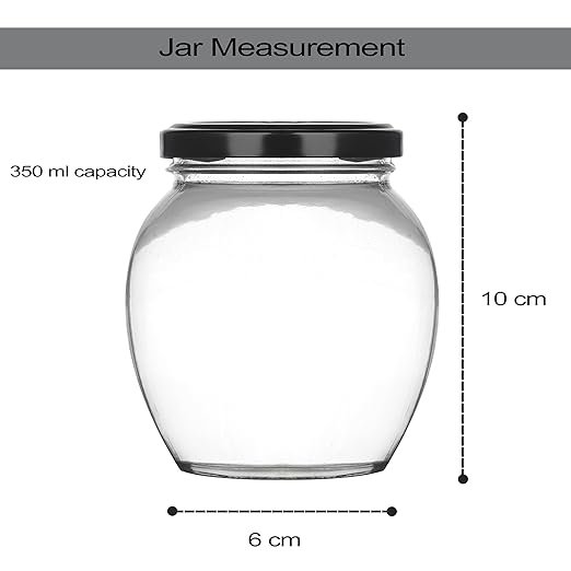 Transparent Glass Jar and Container Air Tight Black Lid for Kitchen 400 ml Mataki Glass Jar with Airtight Metal Lid Pack of 6