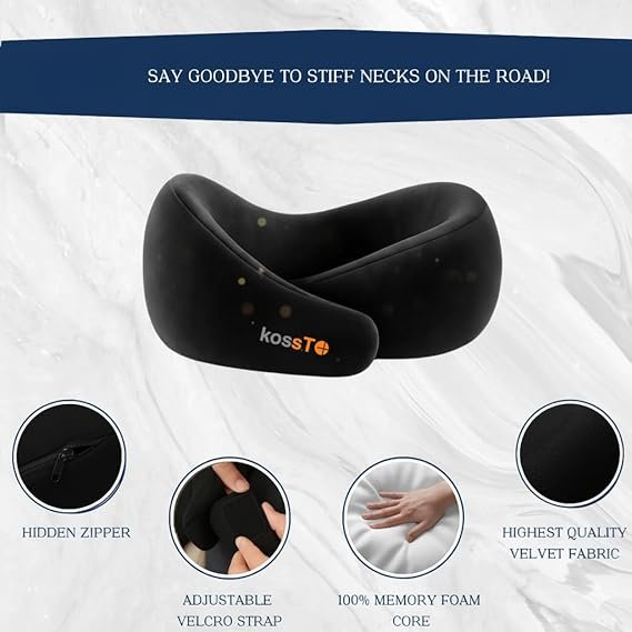 Be the first to review “Travel Neck Pillow – 100% Memory Foam Neck Support Pillow for Flight Travel, Adjustable Velcro Straps, Includes Eye Mask & Noise Isolating Ear Plugs with Free Travel Pouch | Velvet Black” Cancel reply