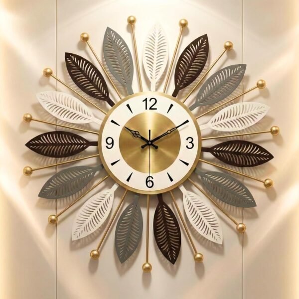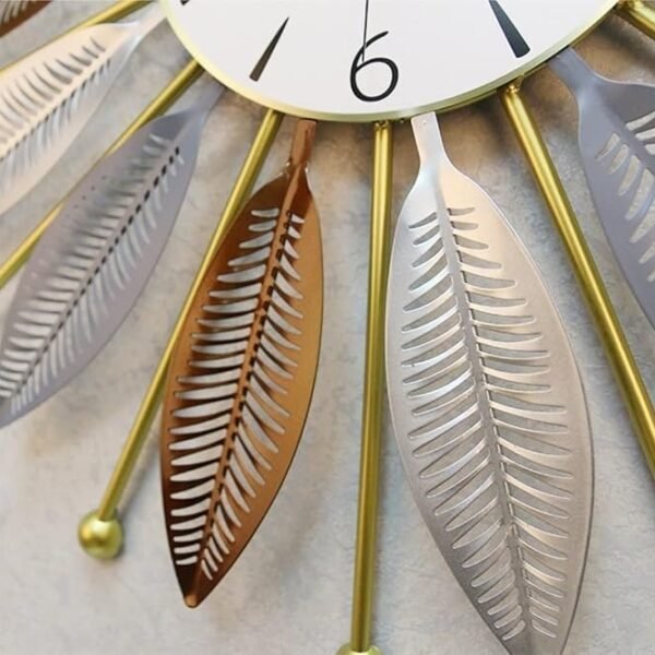 RIOH Decor Premium Metal Wall Clock for Home | Luxury 3D Leaf Design | Silent Sweep Movement | Big Decorative Wall Clock for Living Room, Bedroom & Hall | 60 cm Golden Designer Clock. (Star)(AA1103/178)