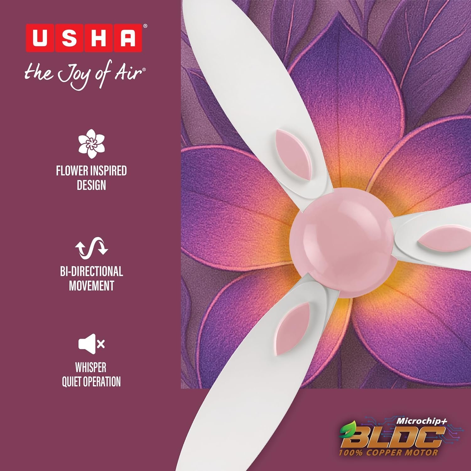 USHA New Bloom Series (Inspired by Plumeria) BLDC Ceiling Fan with Bi-Directional Feature | Sleep/Boost/Timer Modes | RF Remote | Whisper-Quiet | Dust-Resistant (white & Light Pink)