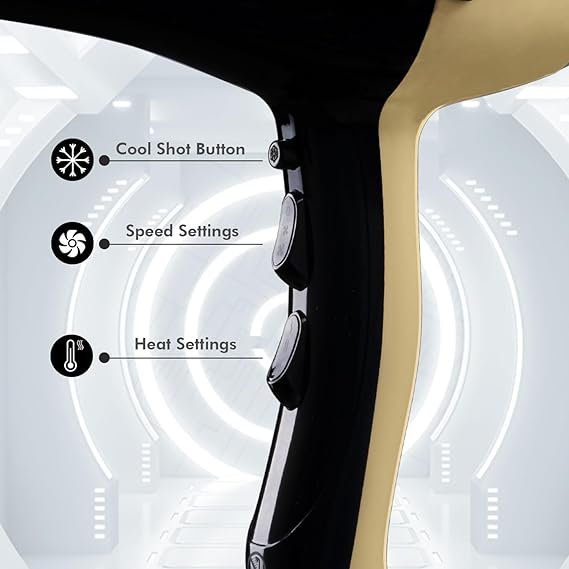 VEGA PROFESSIONAL Pro Dry 1800-2000W Hair Dryer for Woman & Man | Blow Dryer for Women Cool Shot Button & Combination of 4 Heat & 2 Speed Settings, Gold, (VPVHD-04) (AA1104/47)