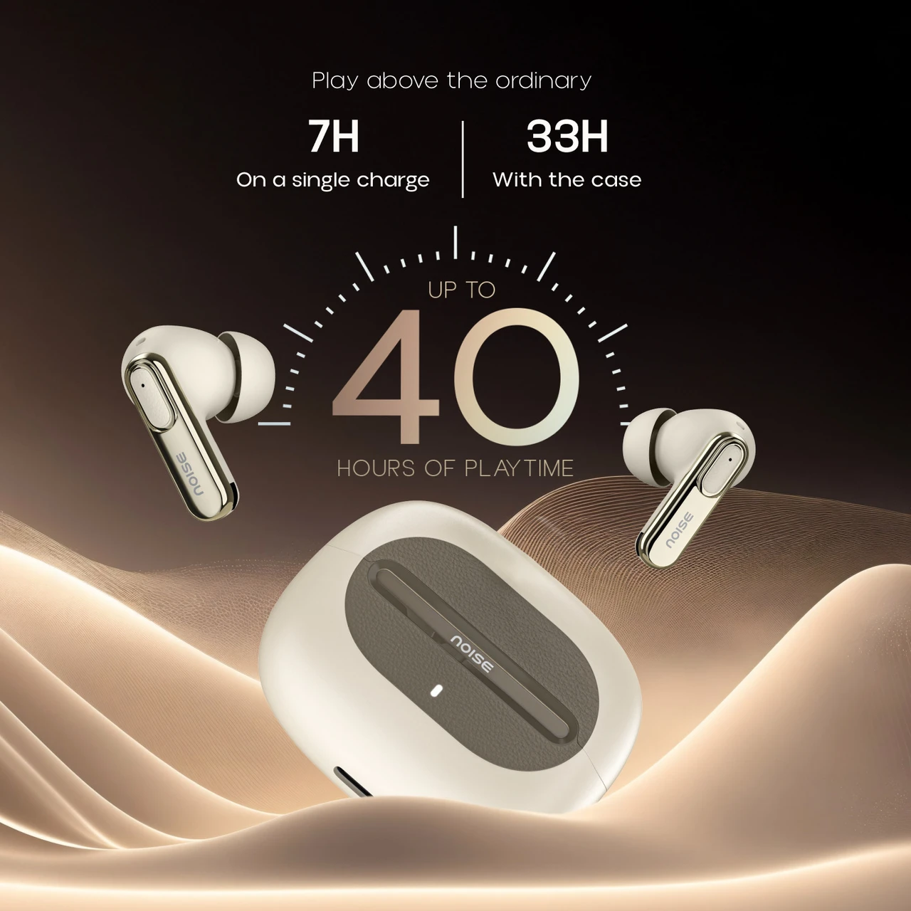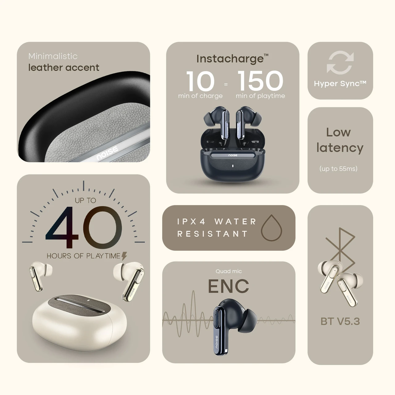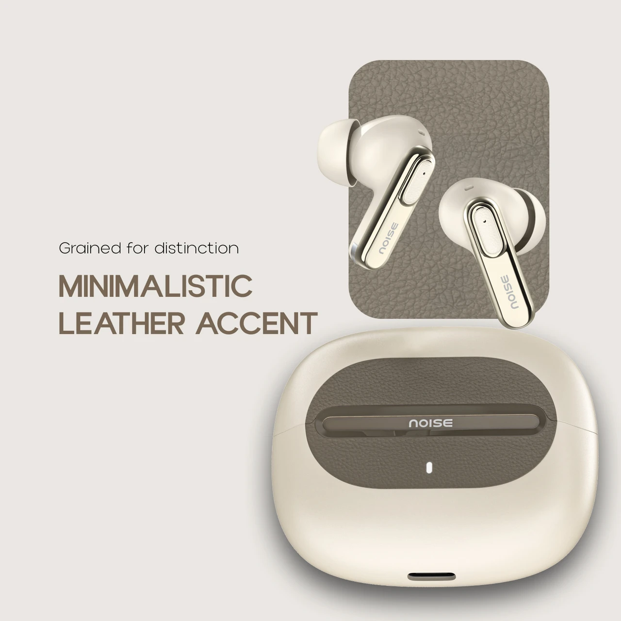Visit brand store Noise Buds UNO, 40Hrs Playtime, Quad Mic with ENC, Premium Leather Accent, Dual Pair Bluetooth Headset (Ivory Grain, True Wireless)