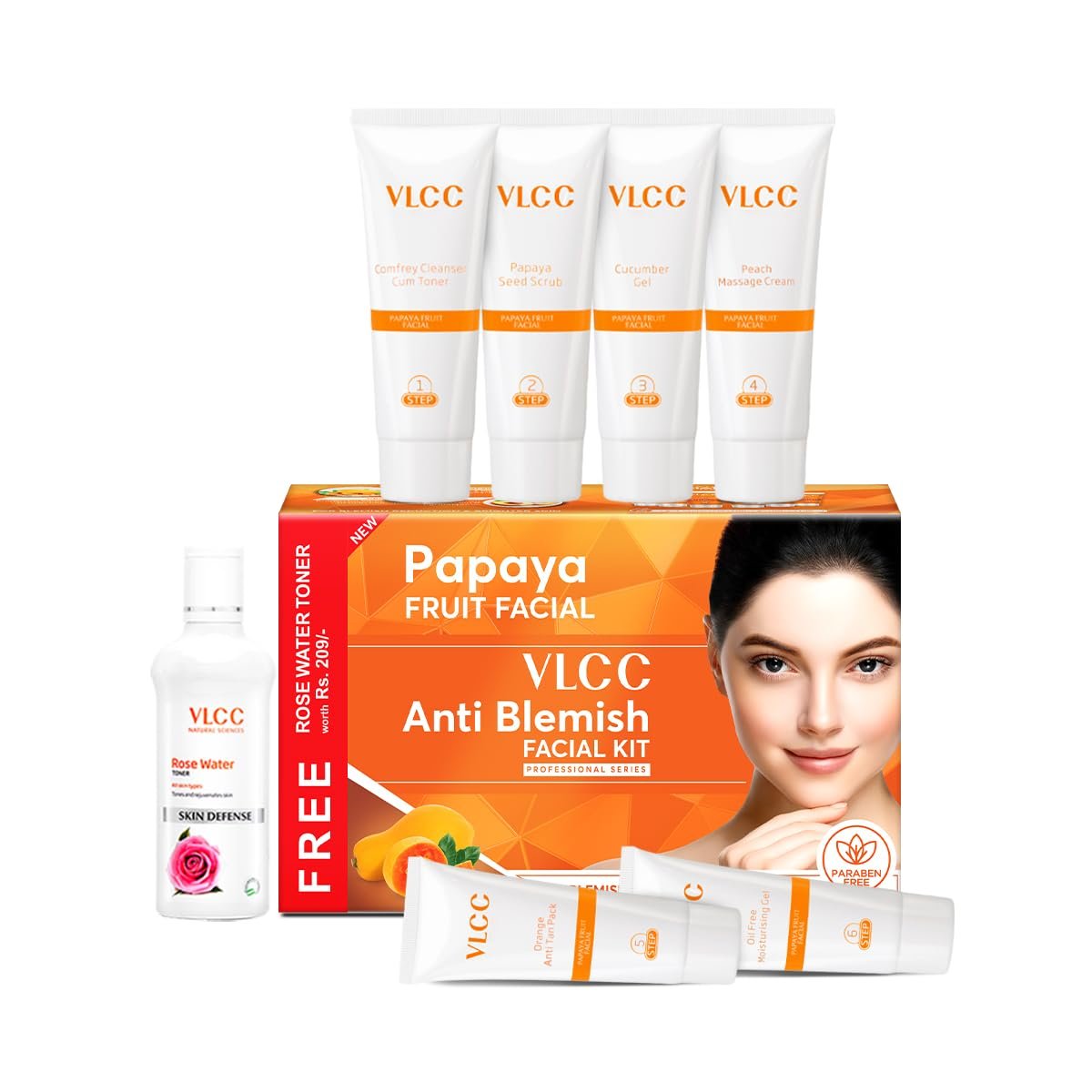 VLCC Papaya Fruit Facial Kit with FREE Rose Water Toner – 300g + 100ml | Glowing, Blemish Free Skin | With Papaya, Cucumber, Peach & Orange Peel Extracts | Glowing at Home Facial Kit.(AA1103/146)