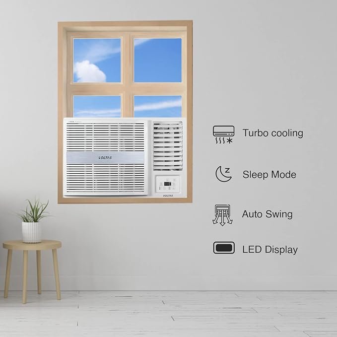 Voltas 1 Ton 3 Star, Fixed Speed Window AC (Copper, Turbo Mode, 2023 Model, 123 Vectra Platina, White)