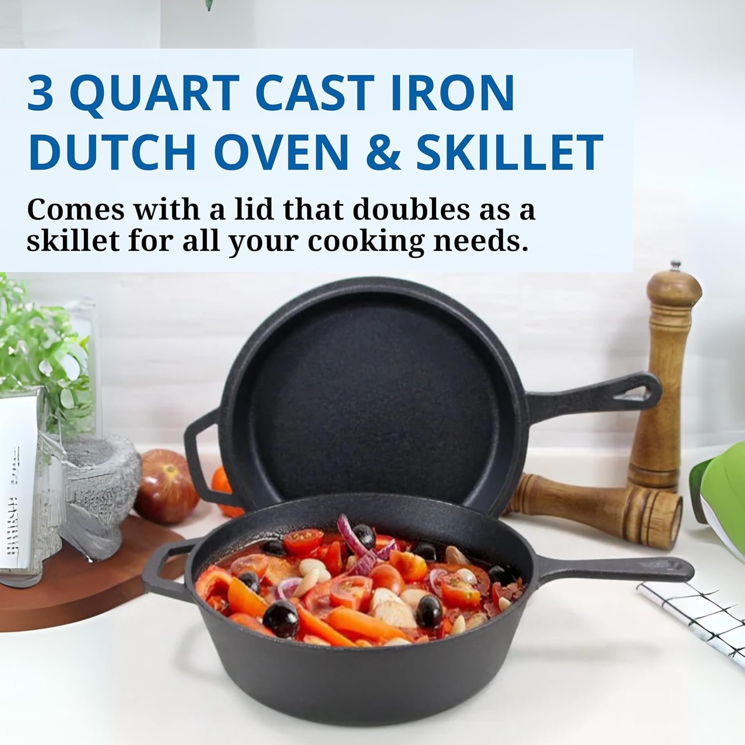 Westinghouse Cast Iron 3-Quart Seasoned Dutch Oven with 10.25-Inch Skillet Lid(AA1103/98)