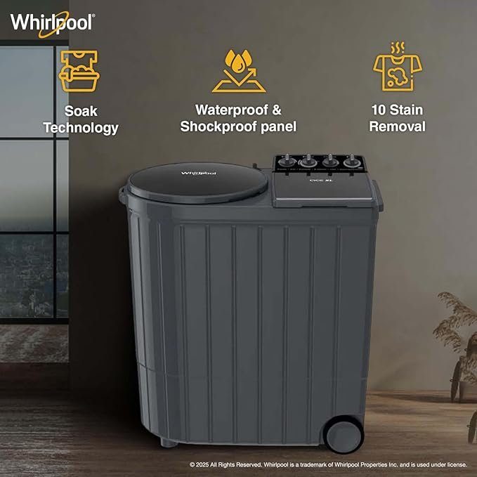 Whirlpool 11Kg Semi-Automatic Top Loading Washing Machine (ACE XL 11 DMIX GRAPHITE GREY,10YR MW, Dynamix Detergent Dispenser)