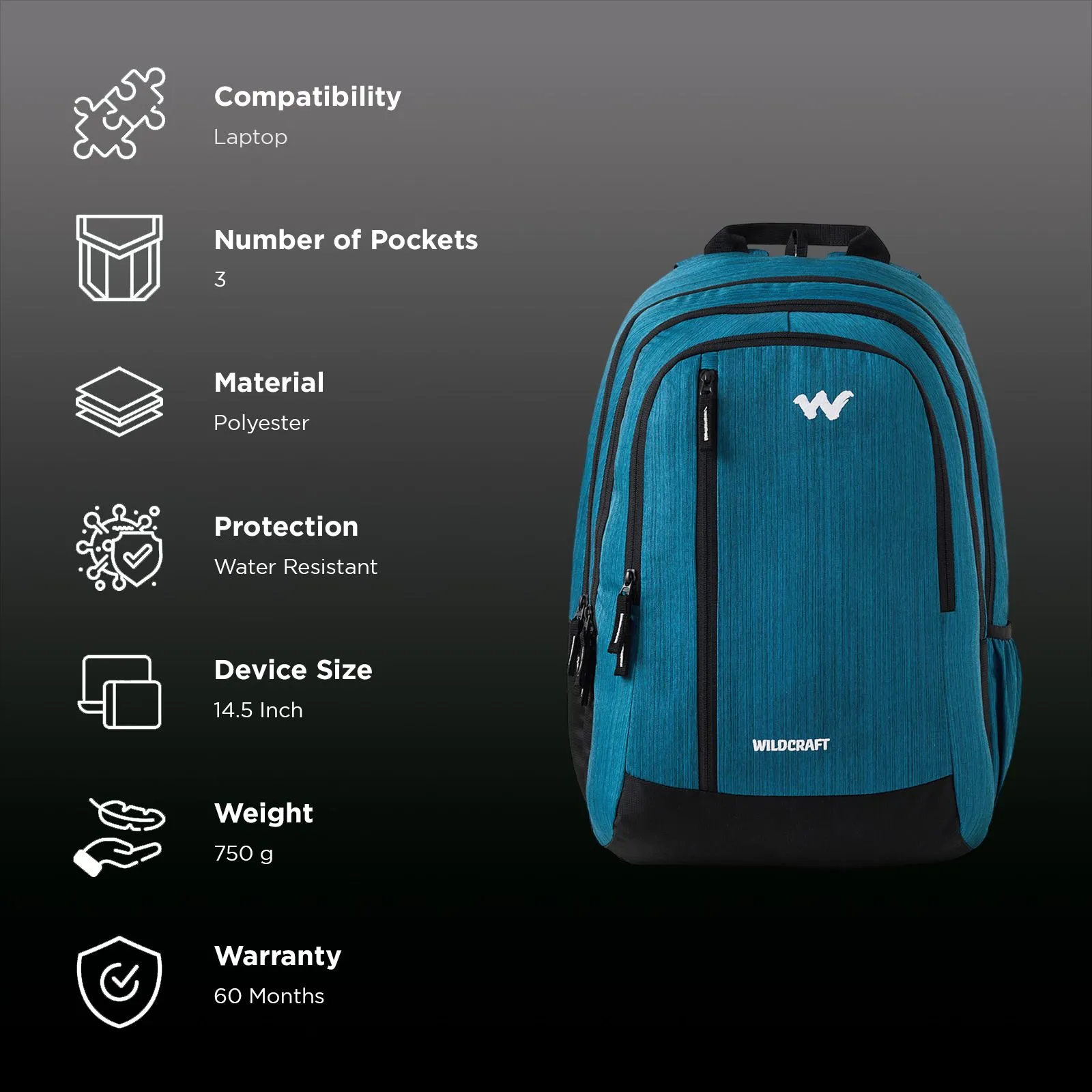 WILDCRAFT Casper 2 Polyester Laptop Backpack for 14.5 Inch Laptop (Water Resistant, Blue)